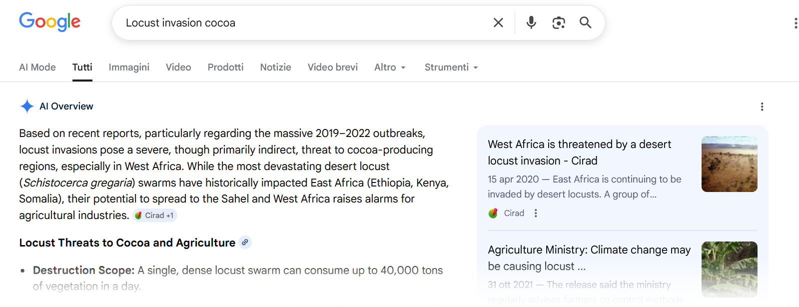 Mancava, ho scritto? Se inserite su Google modalità AI in realtà c’è proprio stata una Locust Invasion che guarda caso ha minacciato severamente la produzione.